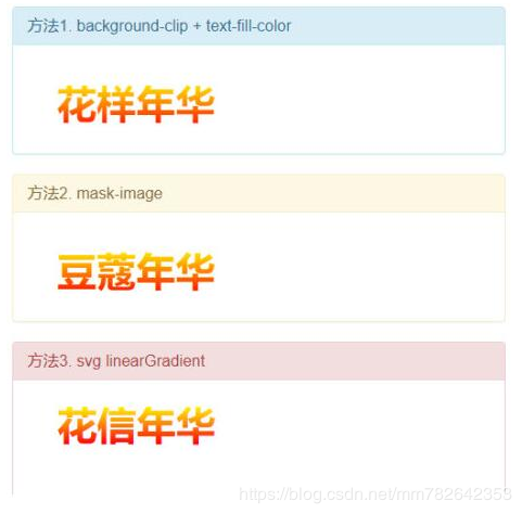 <h3 class="panel-title">方法1. background-clip + text-fill-color</h3>