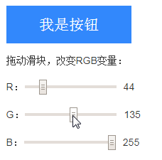 拖动R,G,B对应滑块,可以看到按钮文字颜色以及边框颜色,会自动根据背景色不同而发生变化。具体表现为: