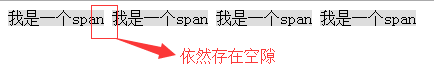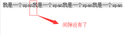 上面例子中,对span不做任何处理依然存在空隙,这到底是什么原因,是否是结构上的问题。假如将span标签都写成一行,又是怎样的效果,来看一下: