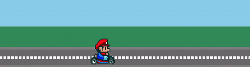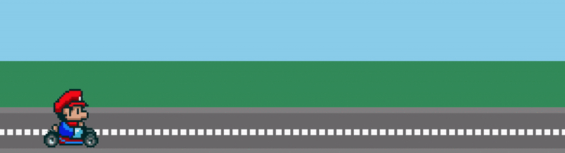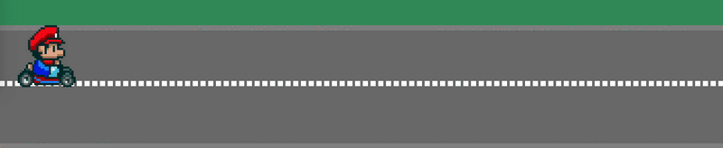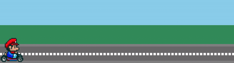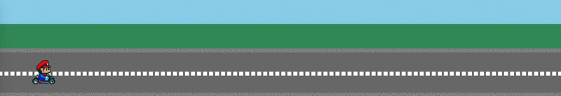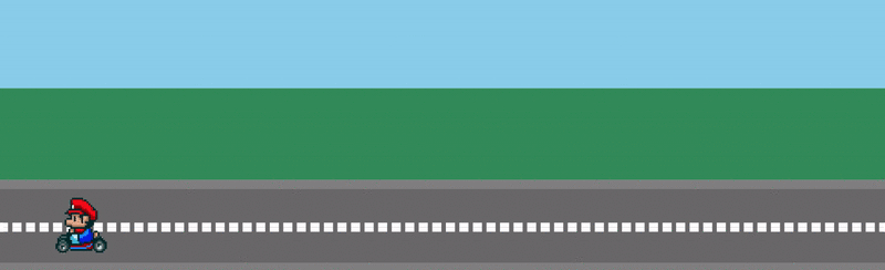 <div class="sky"></div> <div class="grass"></div> <div class="road"> <div class="lines"></div> <img src="http://lc-jOYHMCEn.cn-n1.lcfile.com/a3f630c957a4b32d0221.png" class="mario animated"> </div>
