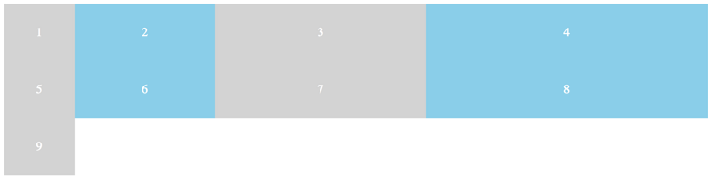 如果grid item的起始grid line为默认,我们可以只设置它的跨度(span):