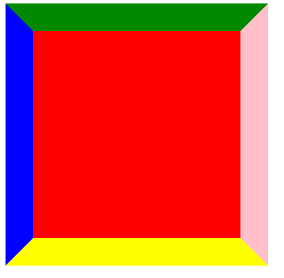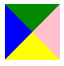 width: 0; height: 0; background: transparent; border: 40px solid black; border-left-color: blue; border-bottom-color: yellow; border-right-color: pink; border-top-color: #008800;