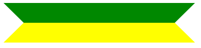 width: 300px; height: 0; background: transparent; border: 40px solid #008800; border-left-color: transparent; border-bottom-color: yellow; border-right-color: transparent; border-top-color: #008800;