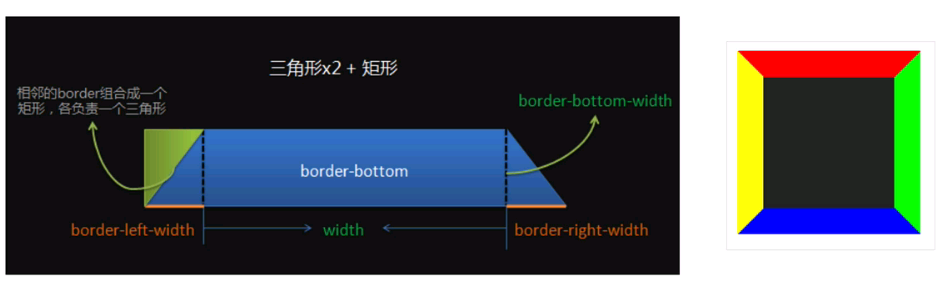 1、等腰三角形:将其他的边的border设置成透明