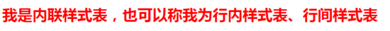 <h1 style="color:red;">我是内联样式表,也可以称我为行内样式表、行间样式表</h1>