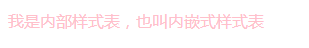 从上面代码中可以看出,给p标签使用的是内部样式表,添加了字体颜色是pink,显示效果如下: