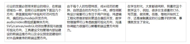 行业的发展必然带来职业的细分,在前端领域也一样,目前行业前端有下面这几个方向:界面展现用户体验和可访问性方向、