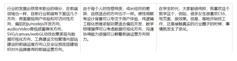 在学生时代,大家都很纯粹,我喜欢这个就学这个,例如,很多女生很喜欢CSS,写页面,做效果。但是,等她开始找工作,还是接