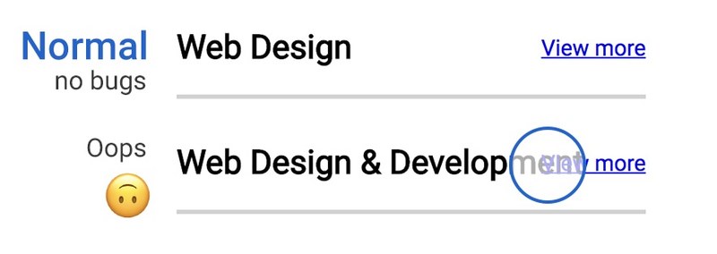 这是一个手风琴效果的开关按钮。按钮右侧有一个小图标用来强调它是可点击的。然而当按钮的区域不够长的时候,按钮上的文字会盖住图标。当我们没有考虑到较长内容的时候这种情况就可能发生。