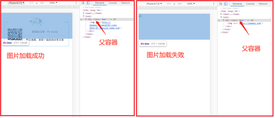 下面看看这种情况下,图片加载成功和失败的对比: