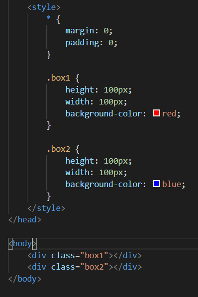 最开始两个盒子在网页上的位置如下: