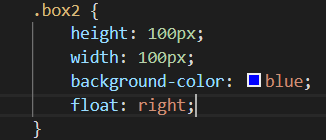 然后我们将蓝色盒子也浮动到右边看看效果: