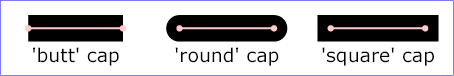 3、 stroke-linecap 表示描边端点表现方式。可用值有: butt 、 round 、 square 、 inherit 。图示如下:
