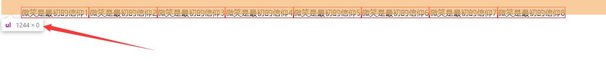 注意:在这里笔者还没有给浮动元素清除浮动呢,大家可以明显的看到ul标签高度为0。
