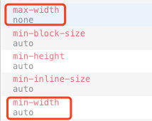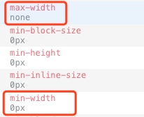 max-width 的默认值是 none ,而 min-width 的默认值一般是 0 ,而此处却是 auto ,这也是出现“异常”的原因了。