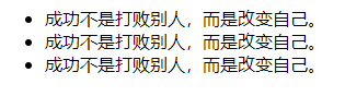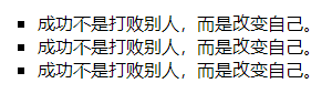 注意:为什么给列表设置了 list-style-position 属性值为 outside ,运行结果没有发生任何变化呢,因为列表前面的项目符号默认就在外面的位置,列表前面的项目符号外面的位置就是 ul 标签和 li 标签之间的位置。