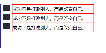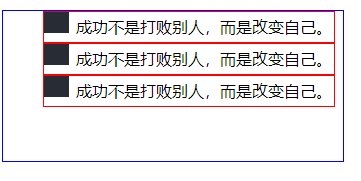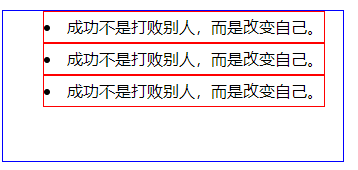 list-style-position 属性值为 outside 之前,我们先看看列表前面的项目符号的默认位置在哪,笔者为了让初学者有一个直观的印象,笔者将 HTML 页面中的 ul 标签 li 标签设置了一些样式。ul 标签样式如:: width 宽度设置为 300px 像素、 height 高度为 150px 像素、 border 边框为( 1px 像素、显示是实线、边框颜色为蓝色)、样式。ul 标签中的 li 标签设置样式如: width 宽度设置为 280px 像素、 height 高度为 30px 像素 line-height 行高为 30px 像素、 border 边框为( 1px 像素、显示是实线、边框颜色为红色)、样式。border 边框的知识,爱学习的园友不用担心以后会写 border 边框的文章,若有想了解 border 边框知识的园友可以去W3school官网 进行学习。代码块