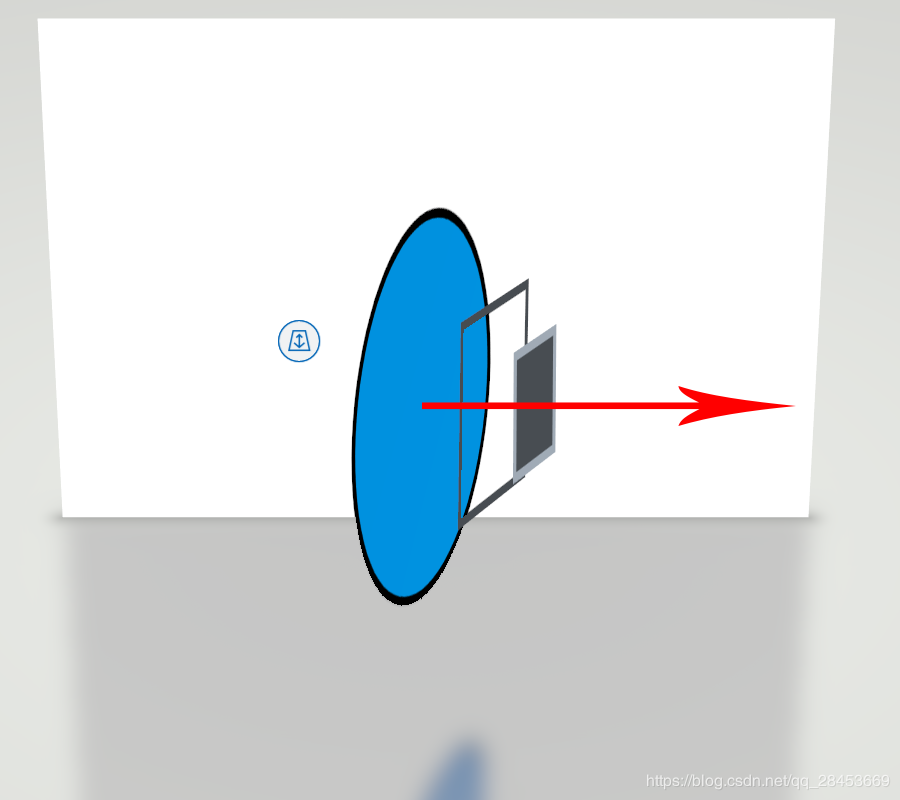 为了让大家能更清晰地明白层级关系,我做了个一个3D效果的关系图,箭头越靠近指向的方向层级越高。最小实心方块是内容区域,最大的蓝色圆形是进行旋转的渐变色背景,但是超出中间盒子大小的部分被隐藏掉了。