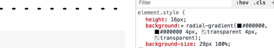 height: 29px; background: radial-gradient(#000000, #000000 4px, transparent 4px, transparent); background-size: 29px 100%;