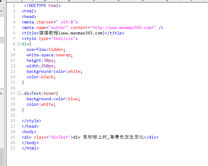<div class="divTest">div 鼠标移上时,背景色发生变化</div>