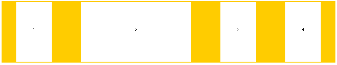 两端对齐space-around:每个项目两侧的间隔相等,即项目之间的间隔比项目与边框的间隔大一倍。