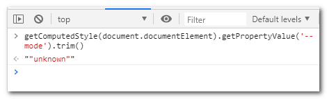 var mode = getComputedStyle(document.documentElement).getPropertyValue('--mode').trim();