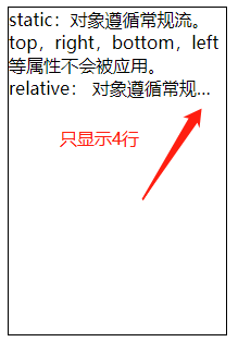 <p> static:对象遵循常规流。top,right,bottom,left等属性不会被应用。 relative: 对象遵循常规流,并且参照自身在常规流中的位置通过top,right,bottom,left属性进行偏移时不影响常规流中的任何元素。 absolute:对象脱离常规流,使用top,right,bottom,left等属性进行绝对定位,
