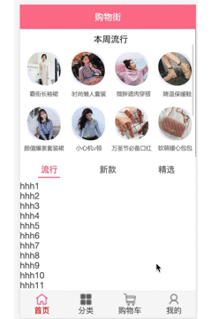 当鼠标下滑到一定高度时,触发position:sticky定位的要求,让“流行,新款,精选”固定为距离顶部44px的地方。