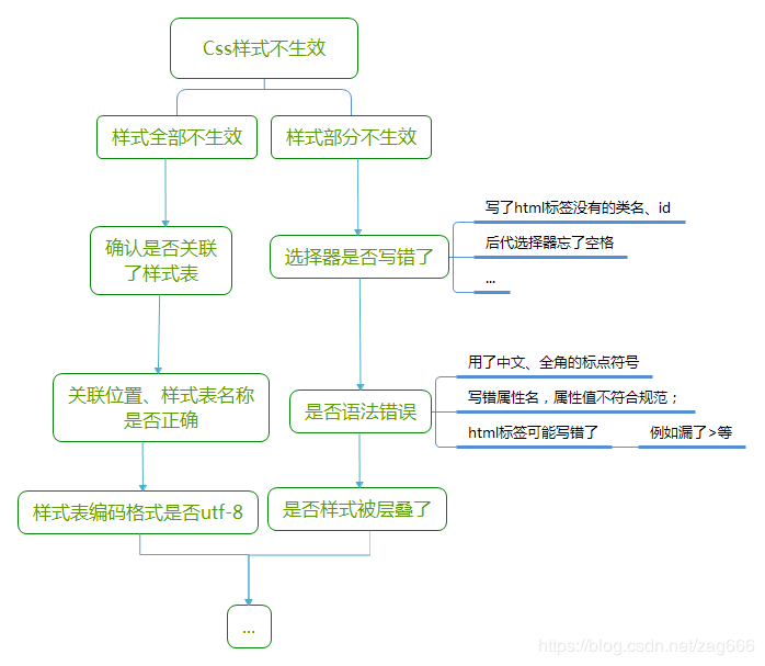 后代子代选择等,涉及多个标签,类名、id等,子选择器的顺序、名字等写错了,均可能导致出错;