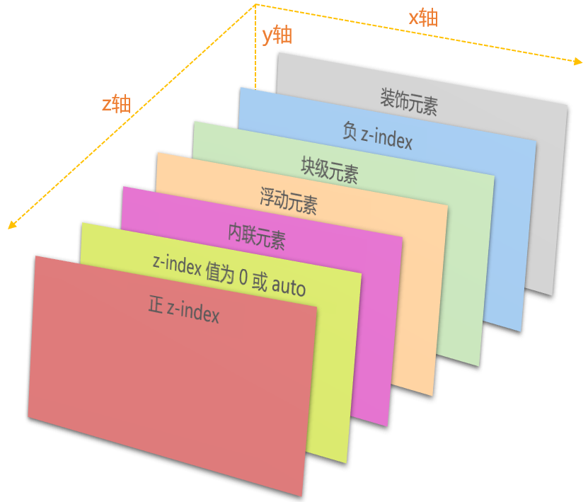 HTML 元素是一个三维的概念,除了水平和垂直方向外,还会在“z 轴”上层层叠加。