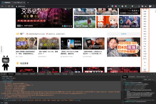 想到以往默哀日访问网站时发现整站会变成全灰,即想到如果立即开始开发、设计图修改等工作也会消耗大量的时间与精力,那会不会有css可以直接处理所有的元素将他们变灰,随即想到了css3的filter(滤镜),并也证实了这一想法的可行性。