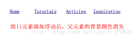 从以上两张图中可以看出添加浮动元素后,li元素按照规则横向排列,但是父元素却消失不见了。