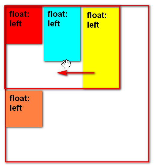 导致被挤下去的浮动元素,需要让开位置,在更下面的地方显示