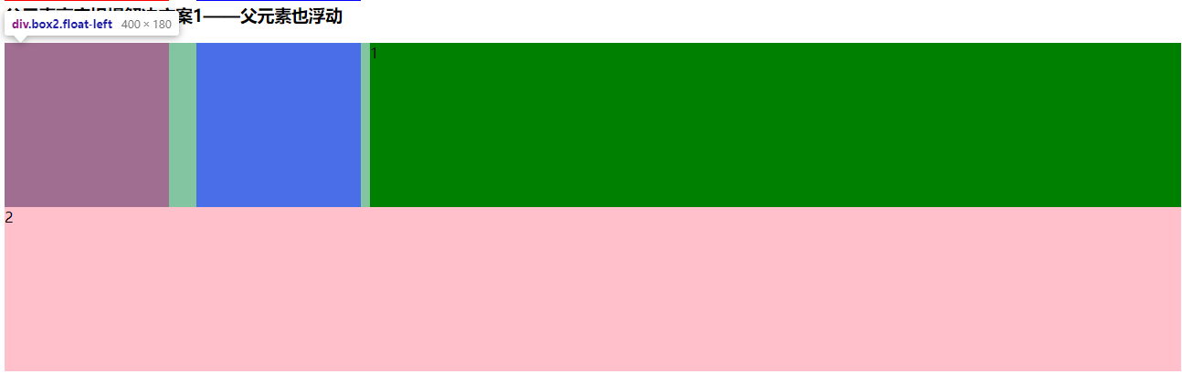 1.父元素也浮动,弊端:影响父元素后面的非浮动元素(后面非浮动元素占据文档流,会补位占据前面浮动元素(脱离文档流)的元素的位置)