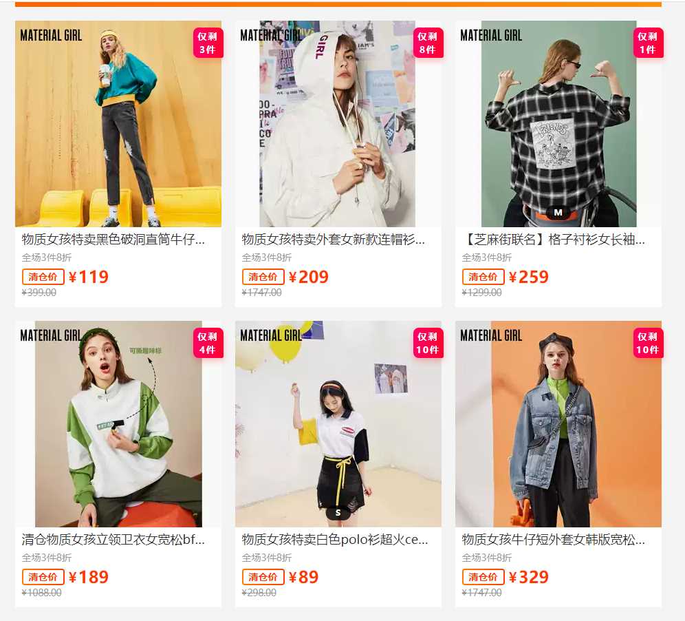 2.直接给父元素写高度 弊端,不是每次都能知道具体高是多少(例如下图淘宝网站上一些商品的列表,你是不知道具体有多少商品的,所以对应的父元素高度也就不清楚了---这里只是举例说明我们不知道父元素具体高度的一些情况,不代表淘宝就是用的浮动来布局的哦~)