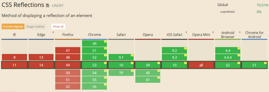 这是一个十分新的 CSS 属性,使用起来十分简单,可以从各个方向反射我们内容。不过兼容性过于惨淡: