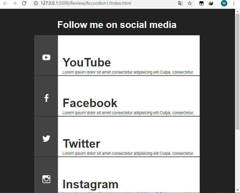 <h1>Follow me on social media</h1>