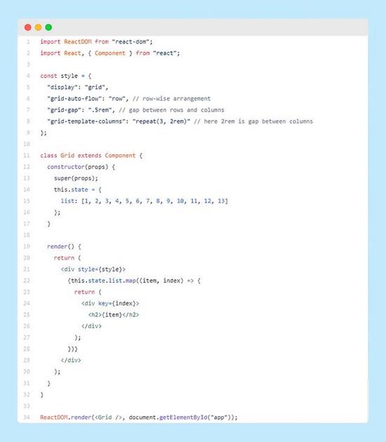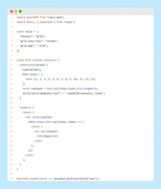 这种技巧可以计算网格布局中要进行的行数并对其进行动态设置,从而非常轻松地解决了该问题。由于我们需要知道按列排列的行数,因此可以说,为解决此问题而对项目进行排列时,行数和列数都需要知道。注意:当布局的宽度(而不是列数)固定时,可以采用具有相同类型的解决方案来解决。