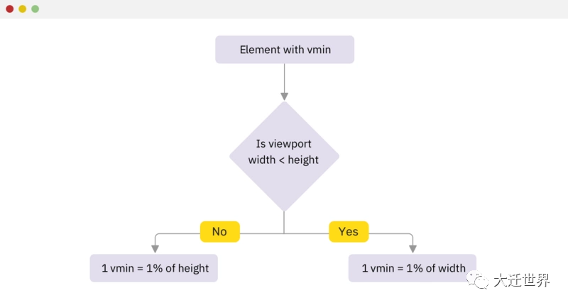 vmin表示视口的宽度和高度中的较小值,也就是vw 和 vh 中的较小值。如果视口宽度大于其高度,则将根据高度计算该值。