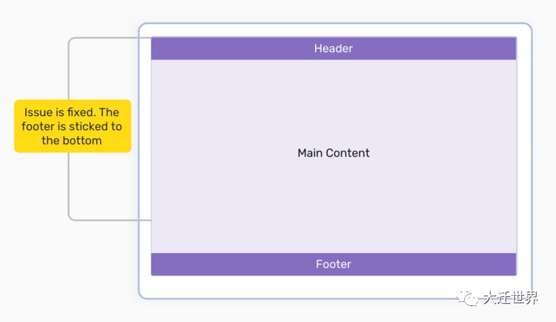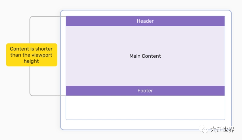 在大屏幕上,网站内容有时候很少,footer 没有粘在底部。这很正常,也不被认为是一种不好的做法。但是,还有改进的余地。考虑下面代表问题的示图: