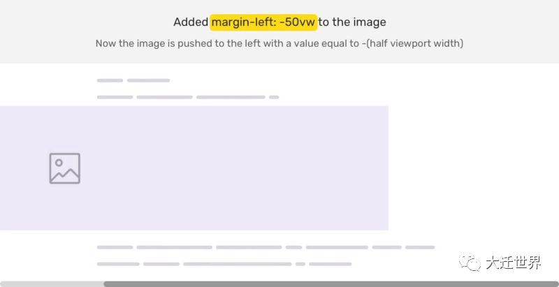 为了使图像居中,我们需要给它一个负的边距,其宽度为视口宽度的一半。