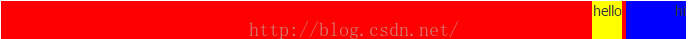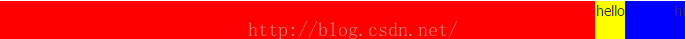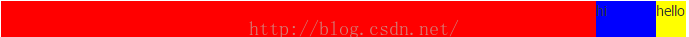 <div style="background-color: red;width: 100%;height: 60px;text-align: right;"> <div style="width: 30px;height: 100%;background-color: yellow;display: inline-block;">hello</div> <div style="width: 60px;height: 100%;background-color: blue;float: right;">hi</div> </div>