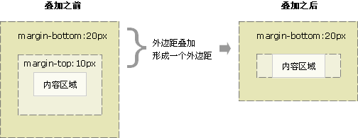 外边距的重叠只产生在普通流文档的上下外边距之间,这个看起来有点奇怪的规则,其实有其现实意义。设想,当我们上下排列一系列规则的块级元素(如段落P)时,那么块元素之间因为外边距重叠的存在,段落之间就不会产生双倍的距离。