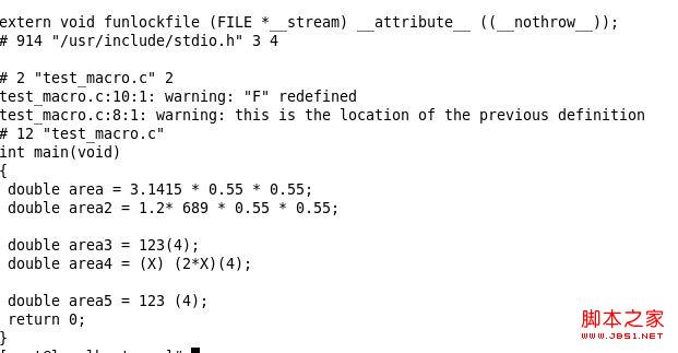 可以看到“#define PI 3.1415”和“#define P I 689”分别是两个不同的宏定义“PI”和“P”;"G(4)"被“(X) (2*X) (4)”替换掉;当调用“F(4)”时,系统并没有替换成“2*4”,而是替换成了“123(4)”,说明“#define F 123”完全屏蔽掉了“#define F(X) (2*X)”,当注释掉“#define F 123”后"#define F(X) (2*X)"可以正常工作。因此,在进行宏定义时,要密切关注空格的影响,并且“带参数宏”和“无参数宏”的名称一定不能相同,否则会出现混乱。但是,在宏调用时空格并不影响效果,例如F(3)和F (3)效果相同(F(X)是带参数宏)。