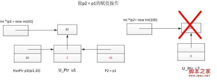 此时,做p1 = p1的操作。那么,首先u1.use自增1,为2;然后,u1.use自减1,为1。那么就不会执行delete操作,剩下的操作都可以顺利进行。按《C++ primer》说法,“这个赋值操作符在减少左操作数的使用计数之前使rhs的使用计数加1,从而防止自身赋值”。哎,反正我是那样理解的。当然,赋值操作符函数中一来就可以按常规那样: