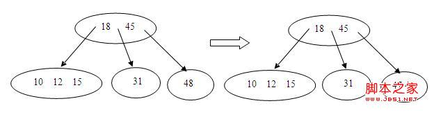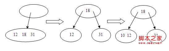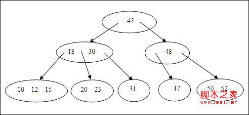 我们用逐个结点插入的方法创建一棵B树,结点顺序分别是{18, 31, 12, 10, 15, 48, 45, 47, 50, 52, 23, 30, 20},我们看看具体过程: