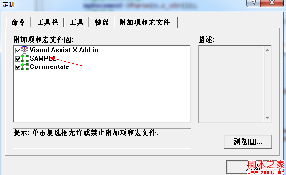 第一:打开VC6.0程序,工具——定制——附加项和宏定义——勾选SAMPLE