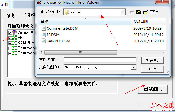 第三:载入文件后,工具—定制中会自动出现或浏览相应路径下相应的文件