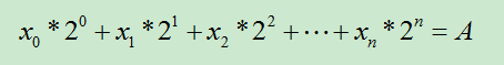 由于矩阵乘法满足结合律,在程序中可以事先给定矩阵的64,32,16,8,4,2,1次方,加快程序的执行时间。(有些题目需要取模运算,也可以事先进行一下)。给定的矩阵次幂,与二进制有关是因为,如下的公式存在解,满足Xi={0或1}:
