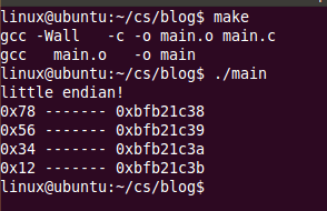 从输出的结果可以看出,高位地址0xbfc1b1ff存的是数据的高位0x12,低位地址0xbfc1b1fc存的是数据的低位0x78。所以是小端。同时我们亦可以看到,对数据data取地址实际指向的是存放低位数据的空间。